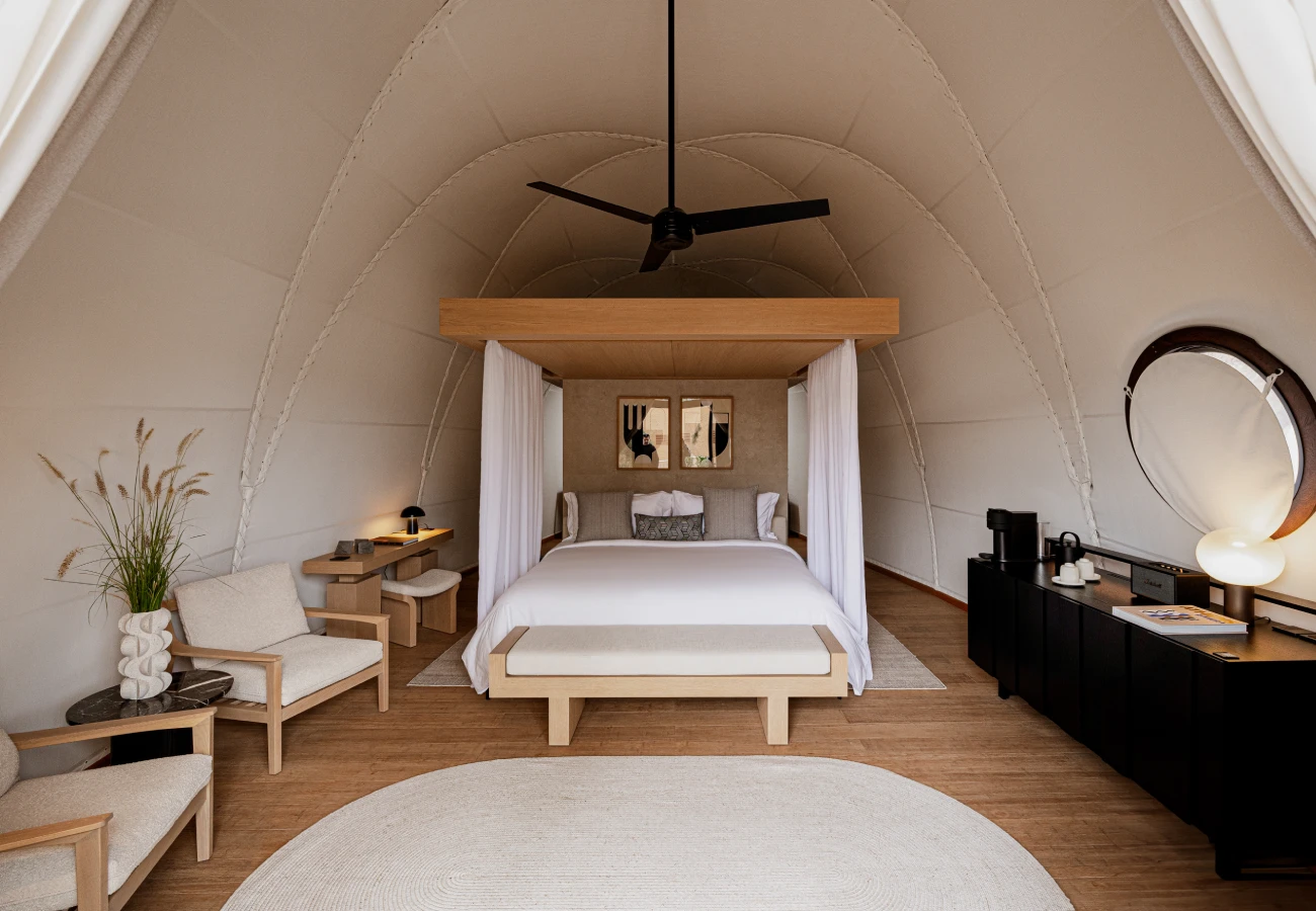 91 Athens Riviera verwandelt Glamping in eine Kunstform. Lehnen Sie sich in luxuriösen Cabanas zurück, verbringen Sie aktive Tage an der frischen Luft und speisen Sie unter Palmen im Restaurant Barbarossa, wo Aromen aus Paros mit der lebendigen Energie der Küste verschmelzen. Lassen Sie sich vom sanften Rhythmus der Riviera tragen – mit Ausflügen zum Poseidon-Tempel, zum Vouliagmeni-See, zum Bummeln durch die Boutiquen von Glyfada und vielem mehr.