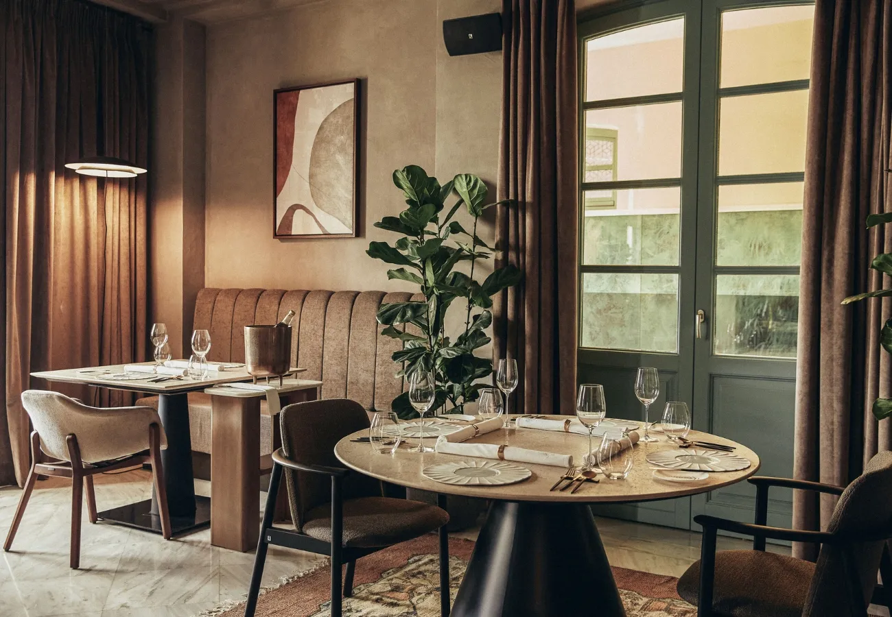 Küchenchef Dionysis Anastopoulos verbindet die kulinarischen Traditionen der Antike mit moderner Kochkunst und präsentiert eine zeitgemäße Interpretation klassischer Meze – eine Hommage an die Freude des gemeinsamen Genießens in einem eleganten, sinnlichen Ambiente.