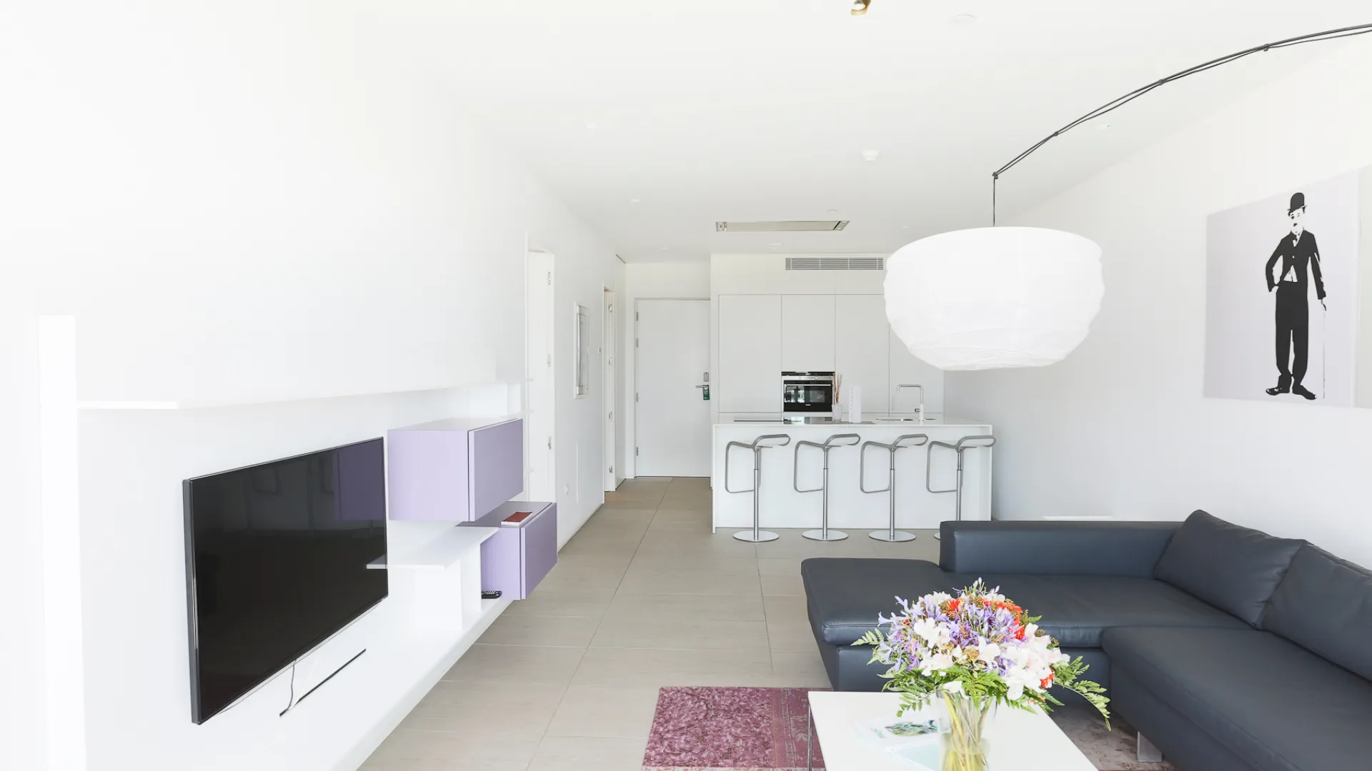 This tranquil one-bedroom suite features a double bed, an additional single bed, a separate living room, and a fully equipped kitchen. Step out onto your private terrace with loungers and mountain views—your serene corner of paradise for peaceful moments under the Tenerife sun.