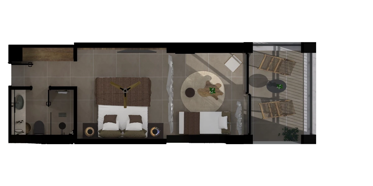 Nid douillet ultime de l’été, cette charmante suite ouverte allie élégance moderne et matériaux traditionnels pour créer une escapade estivale intime sans pareille. Des meubles confortables, des lits paradisiaques et une vue sur le patio font de cette suite la maison de vos rêves sur l’île des mythes et de la magie.