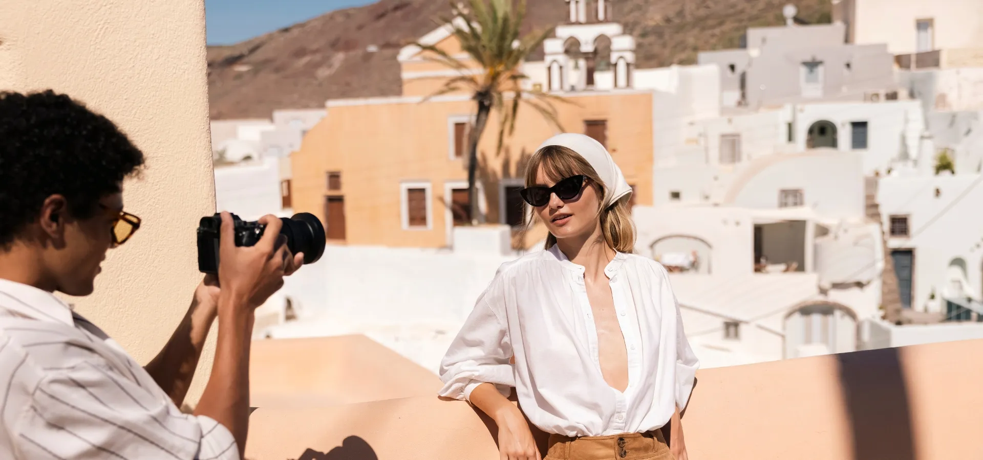 Look into the soul of Santorini through a conceptual lens drawing from the freedom of vintage island fashion aesthetic. Backstage dressing rooms and high-summer palettes feel like stills of you, from a slow, beautiful editorial.