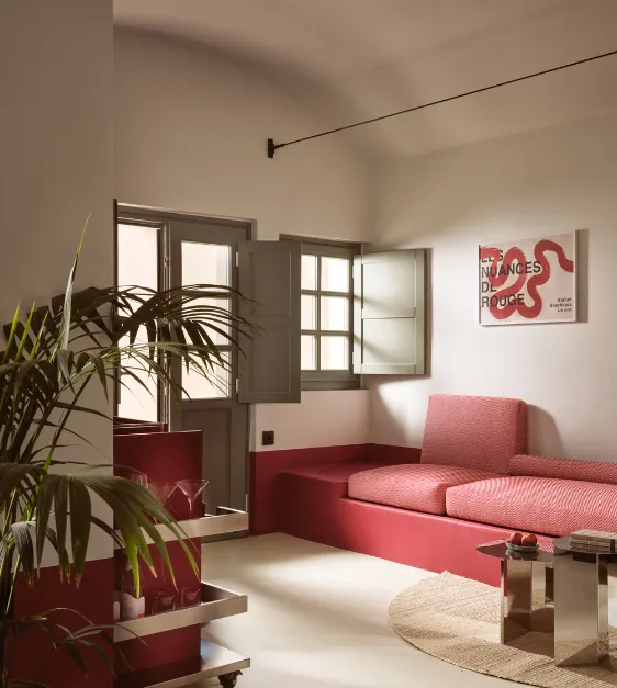Behind every curved wall and arched doorway at Neema Maison lies more than just a room…it’s a fashionable moment. Our high-ceilinged, traditional suites are carved into the hillside and open onto spacious private courtyards where time dilates and light lingers. Designed like intimate backstage dressing rooms, makeup chairs and mirrors stand quietly in wait, and curated fashion details. Bijouteries, shoe forms, and boutique vitrines add a whisper of runway elegance.