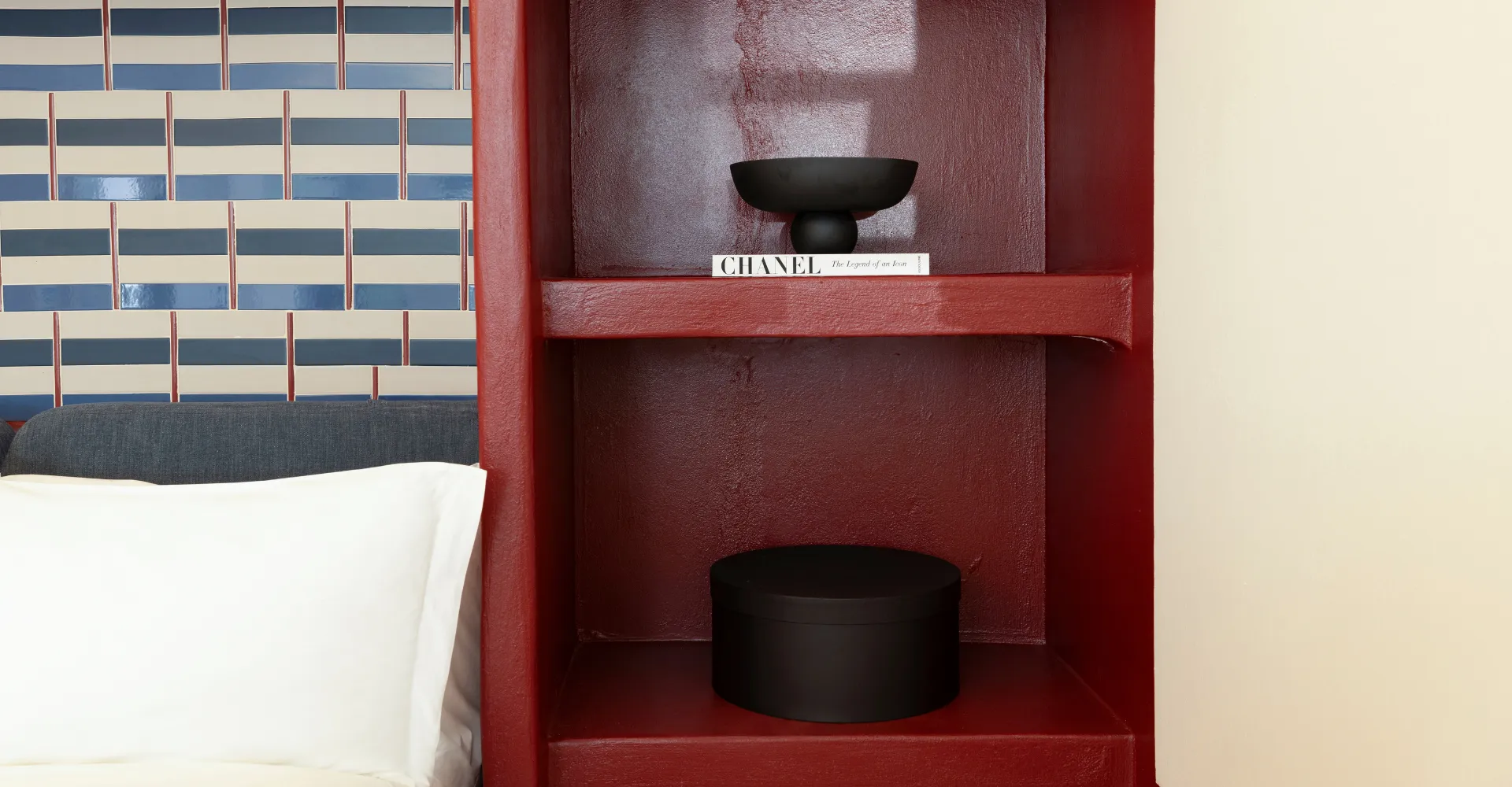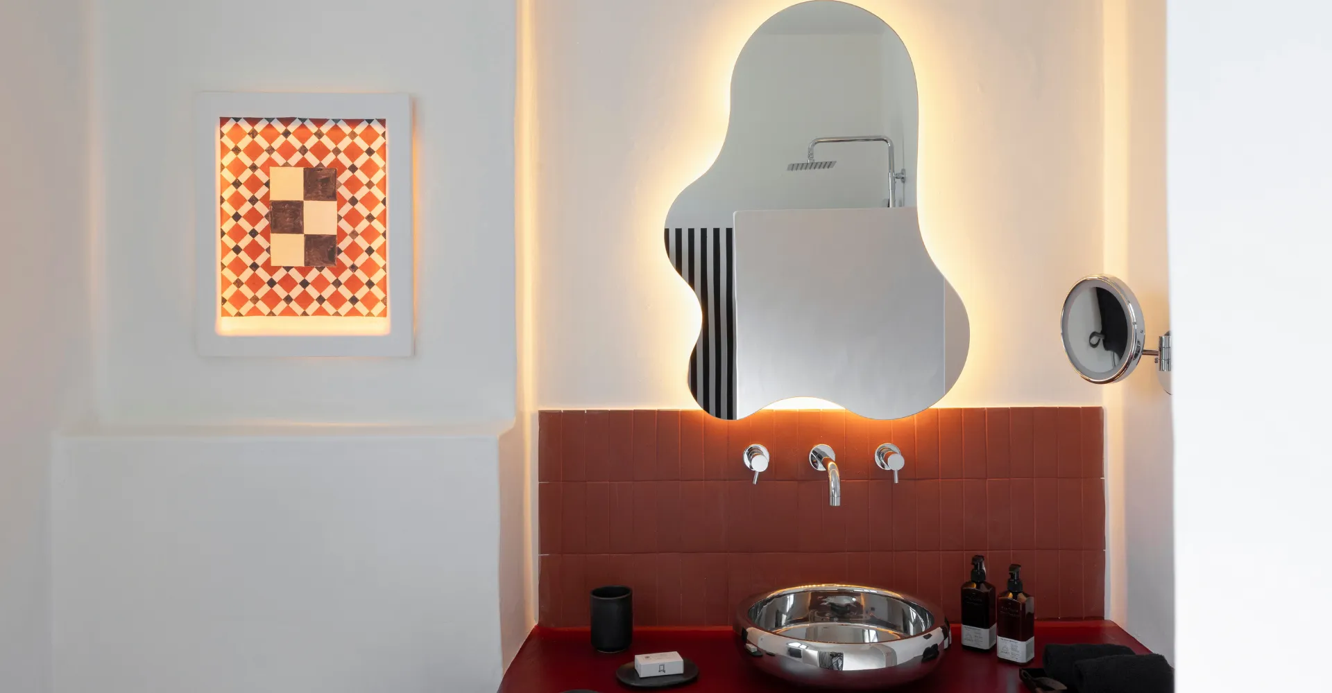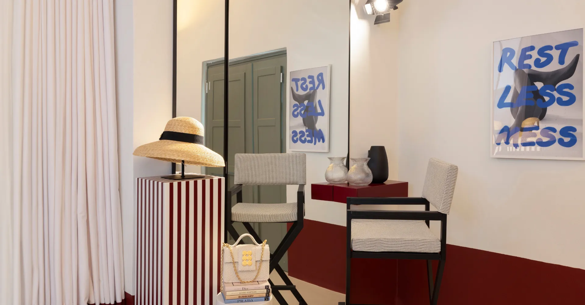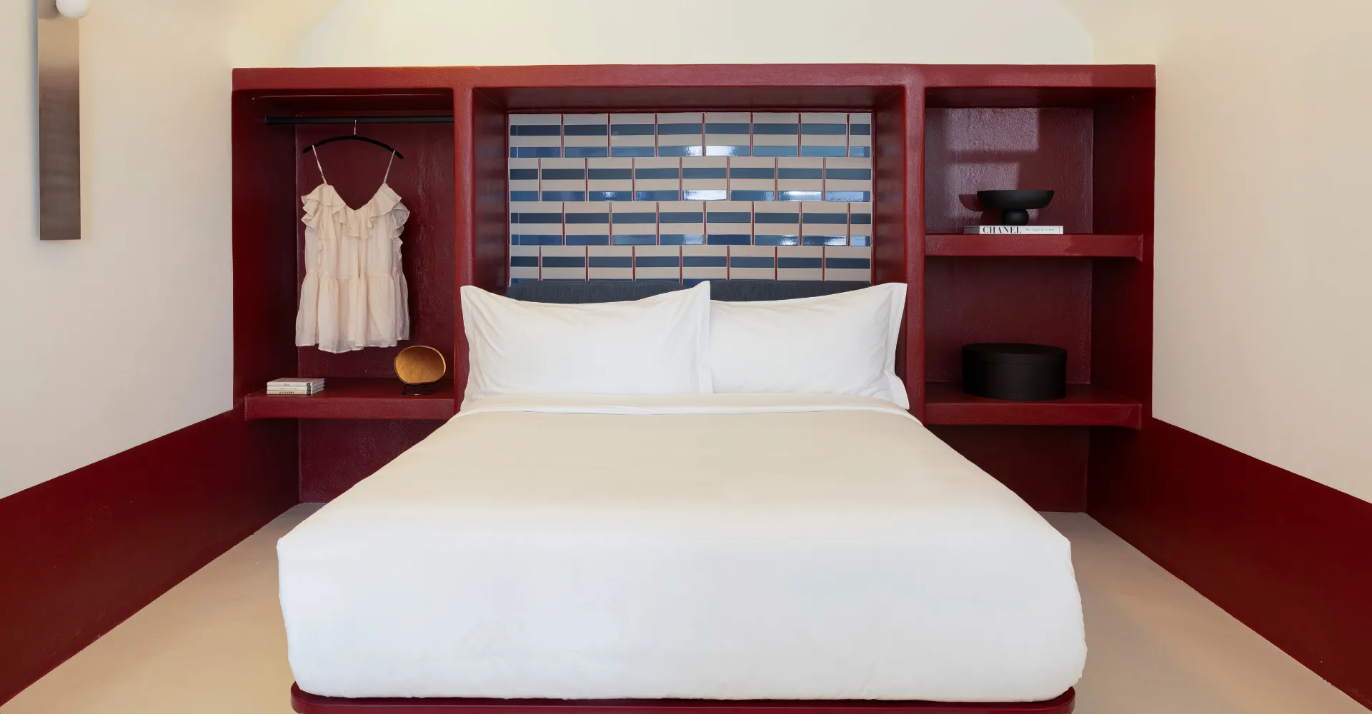 Geometric patterns, bold red accents, and playful details define this stylish suite. Relax in the indoor jacuzzi or on your cozy balcony with side sea views. Includes Marshall speaker, Naxos Apothecary amenities, fashion displays, bijouterie, shoe forms, hatbox and exclusive Neema brand extras for an inspired Santorini escapade.