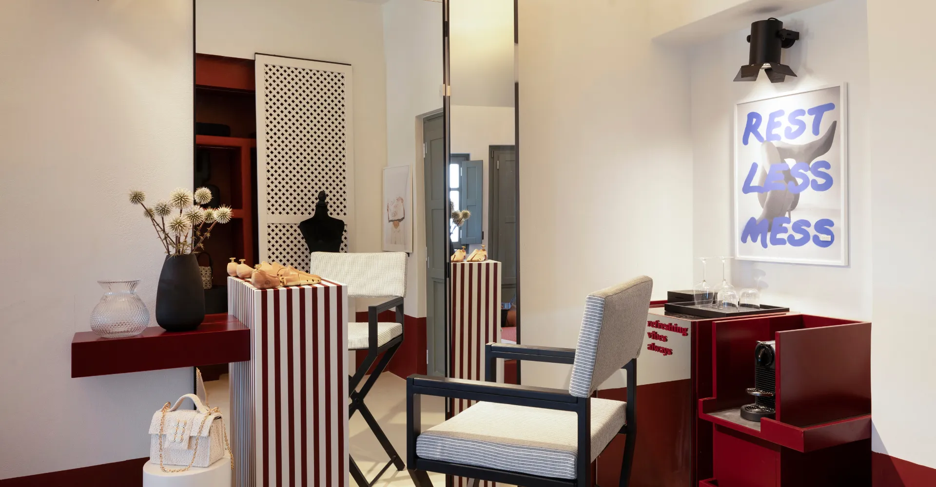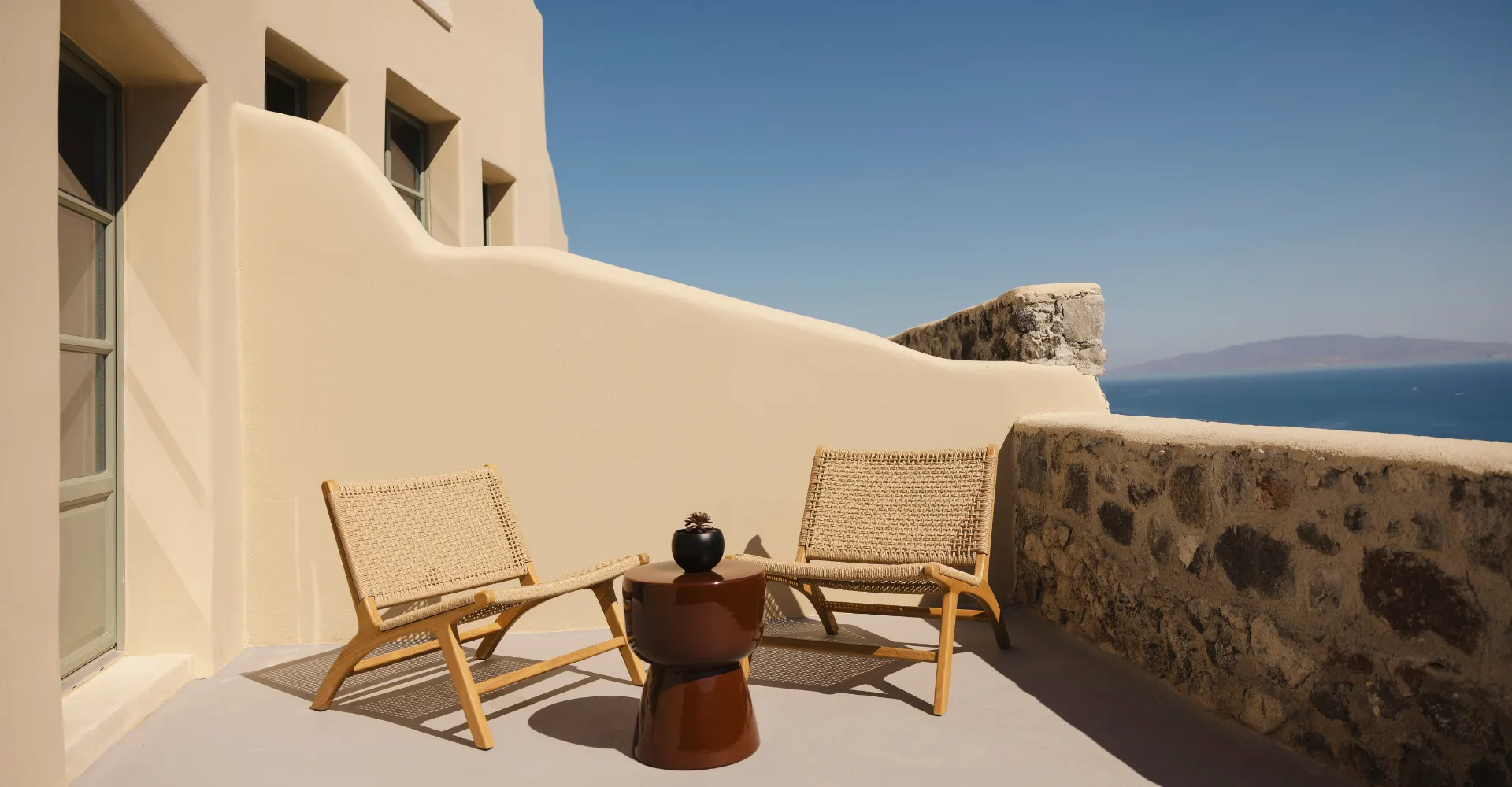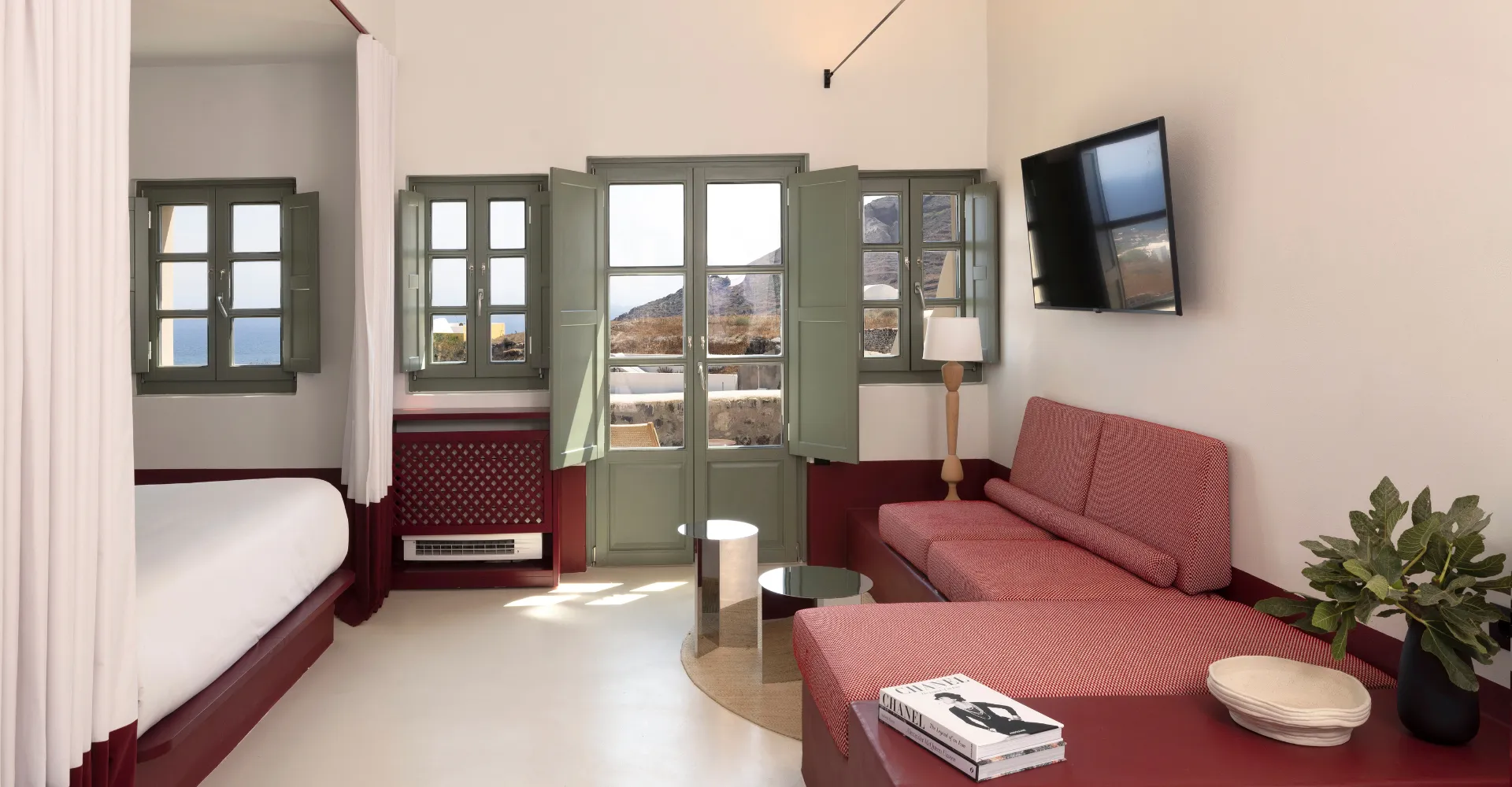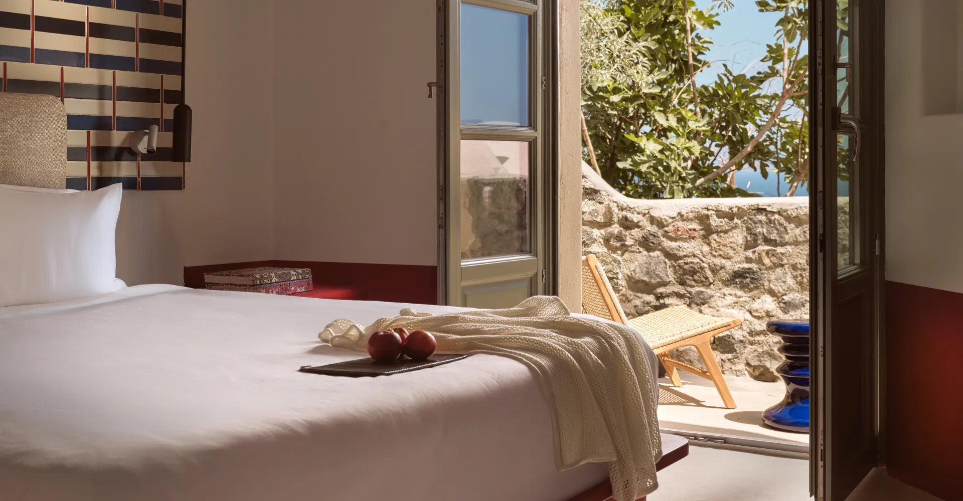 Sarong Hideaway invites you to unwind in vibrant interiors, playful graphic patterns, and calming side sea views from your breezy balcony. Marshall speaker, Naxos Apothecary amenities, bijouterie, shoe forms, hatbox, fashion showcases, and Neema brand extras complete the experience for true island indulgence.
